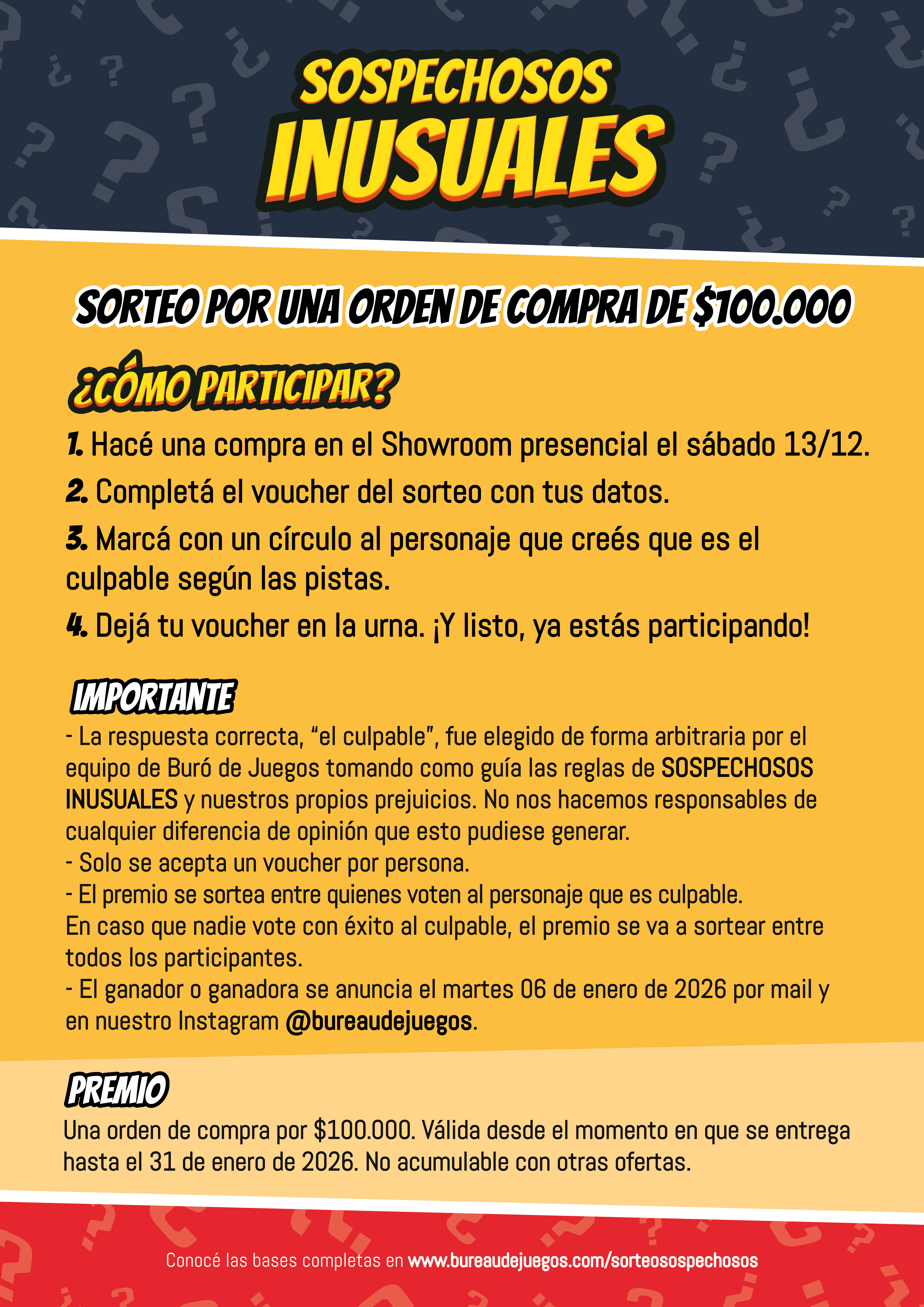Bases y condiciones: Sorteo Sospechosos inusuales - dic 2025